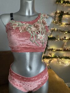 Ensemble 11 velours vieux rose 125 euros
